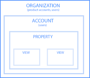 Una organización es el nivel más alto de la jerarquía y representa a la empresa. Una organización puede tener muchas cuentas de GA. A continuación están las cuentas, que son obligatorias para usar Google Analytics. Sin embargo, las cuentas no significan estrictamente cuentas de usuario; puede asignar una propiedad a cada cuenta o asignar múltiples propiedades a una cuenta. En tercer lugar en la jerarquía están las propiedades, que son sitios web o aplicaciones. Cada propiedad requiere al menos dos vistas: una sin configuración y otra con filtros configurados para excluir el tráfico dentro de su empresa, el tráfico de spam y los bots.
